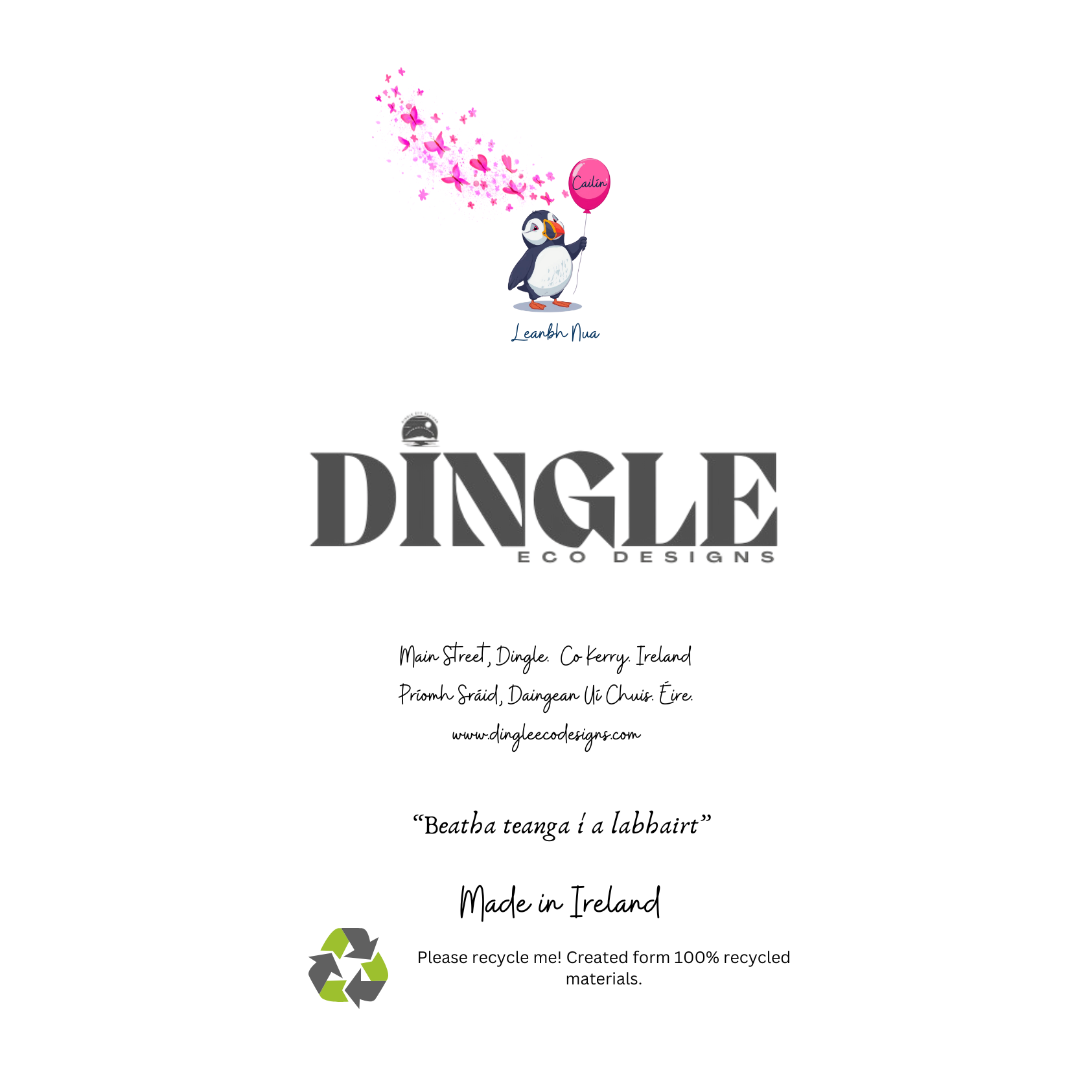 #DingleEcoDesigns #DED #Cailín #BabyGirlCard #NewBaby #IrishDesign #PuffinLove 🐧 #EcoFriendly #RecycledPaper #DesignedInDingle 💗🎈