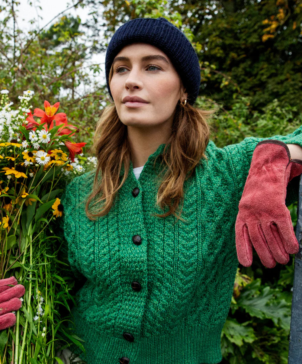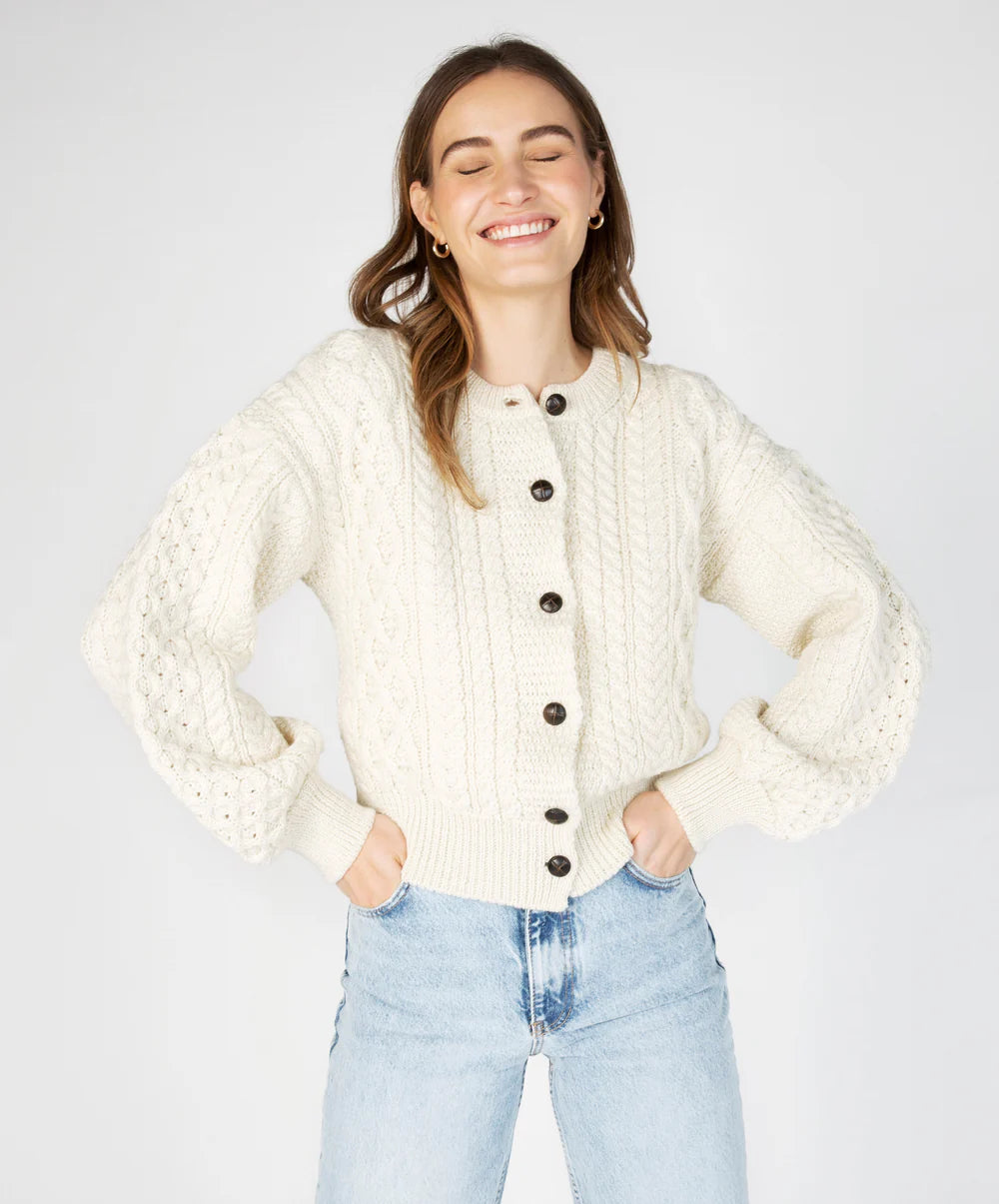 Ireland's Eye 'Clover' Cropped Aran Cardigan – 100% Merino Wool 🍀